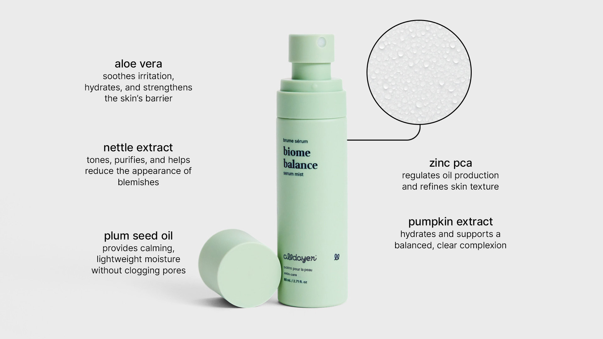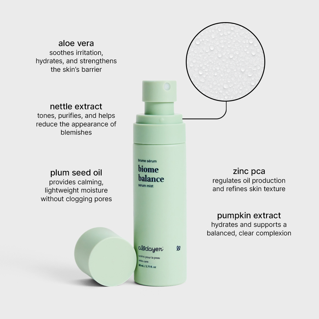 Remplie de prébiotiques, de minéraux équilibrants et d'hydratants à base de plantes, cette brume légère retient l'humidité tout en apaisant les rougeurs. Assez doux pour être utilisé seul comme un nettoyage matinal léger.
